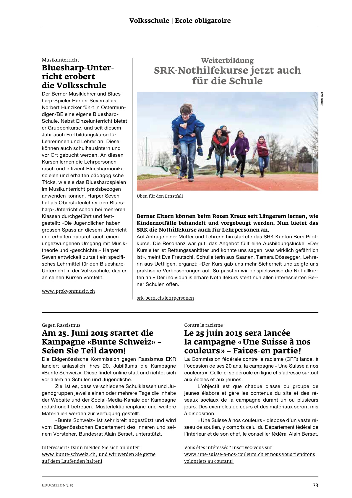 Bluesharpunterricht in der Volksschule: Artikel aus "EDUCATION", dem Amtlichen Schulblatt des Kantons Bern (Ausgabe 3/2015)