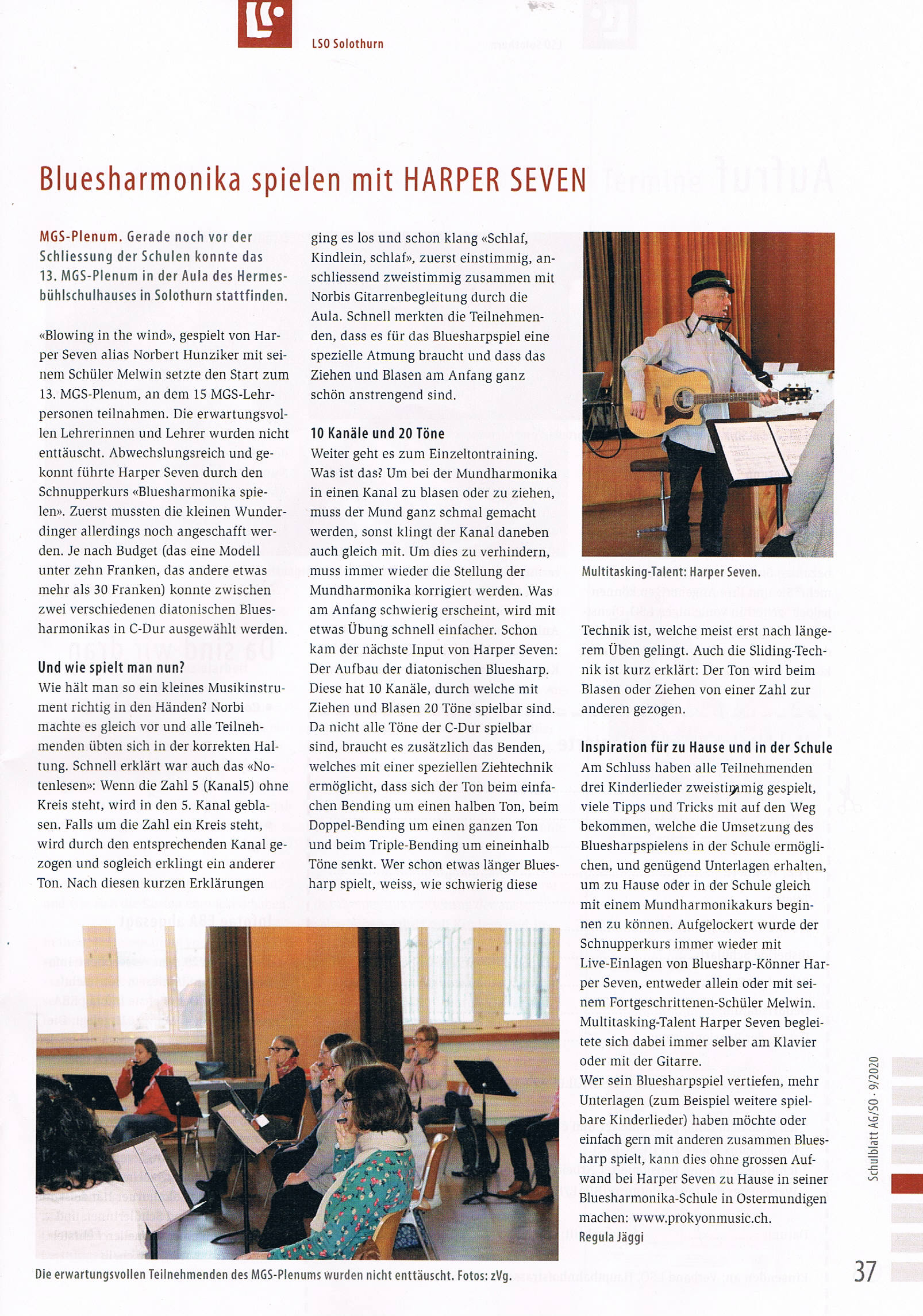 ARTIKEL über LEFO-Kurse unter der Leitung von HARPER SEVEN zum Thema Bluesharp-Unterricht in der Volksschule: